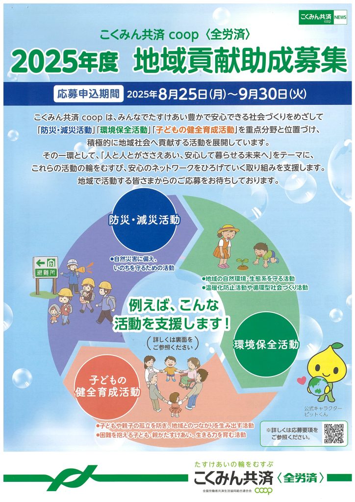 🌱 2025年度 こくみん共済 coop 地域貢献助成 募集開始 🌱