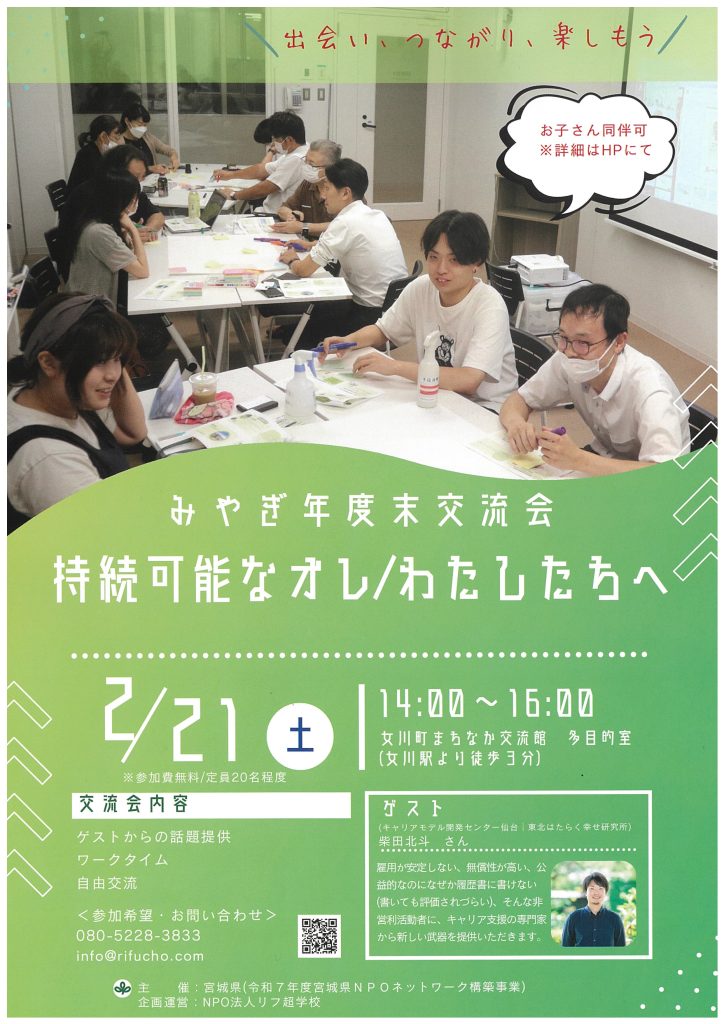 2月21日(土)に「みやぎ年度末交流会」を開催いたします💚