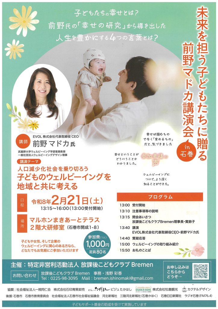 前野マドカさん講演会のお知らせ
